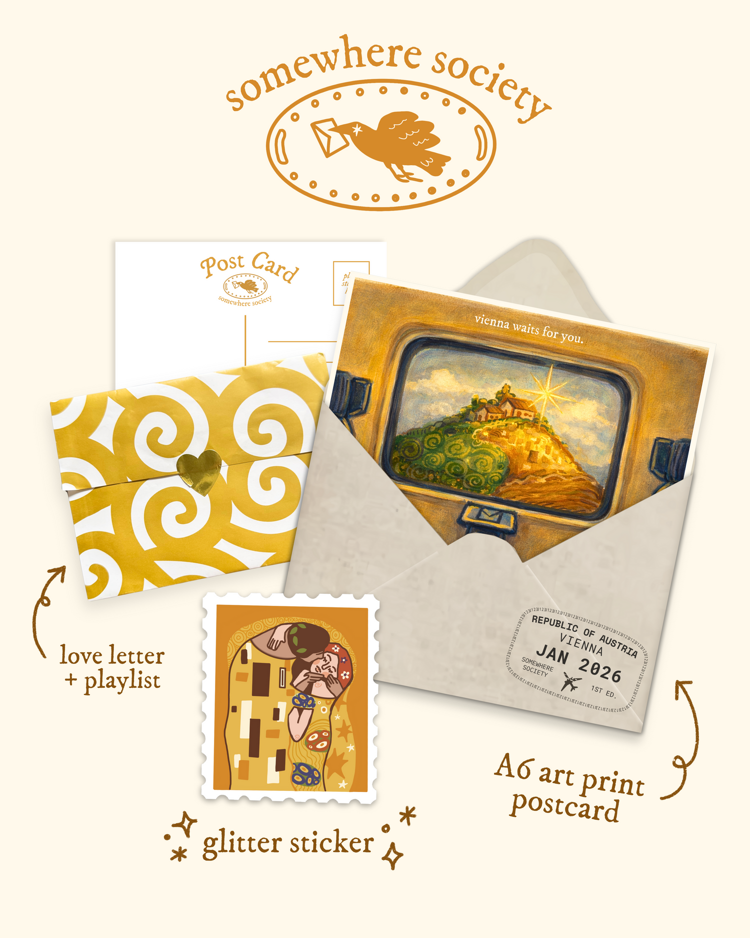 Inspired by my love for art and travel, the Somewhere Society is a monthly mail club that takes you around the world, one city at a time. Each month, we visit a new place and explore it through my eyes, inspired by that city and the artists who shaped it.
